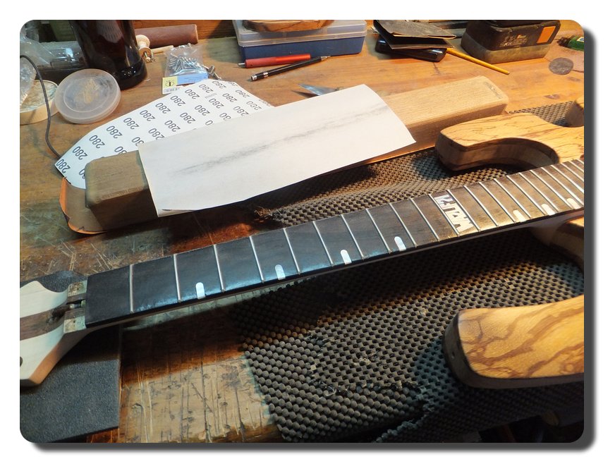 cette opération est délicate car on a vite fait de mettre un coup de lime sur la touche tout propre poncé comme il faut. il existe de petite lame de protection en vente chez les fournisseurs de matos de lutherie et je ne peux que conseiller leur utilisation.